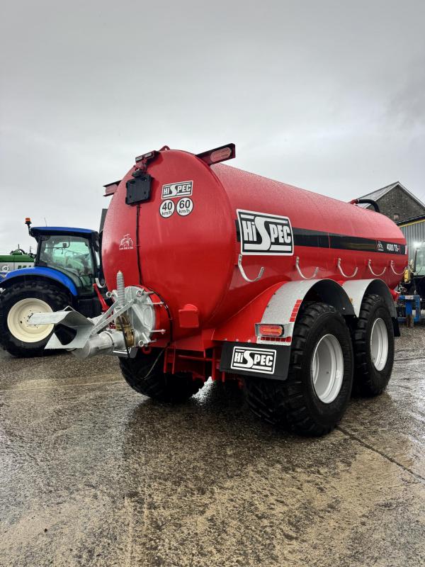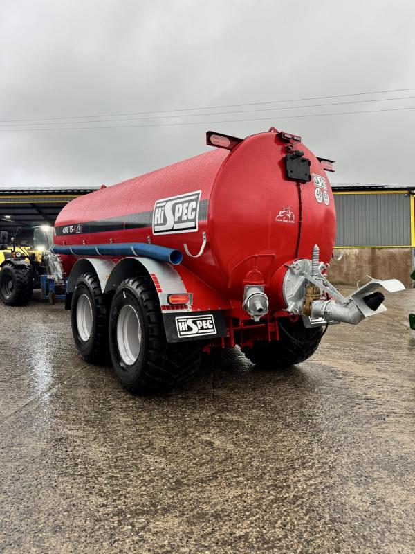 Steering axle Air and hydraulic brakes Wide angle pto Sight tube Sprung draw bar Pump - 11,000 l/min LHS access door 2 x LHS blanked fill points 2x RHS blanked fill points Rear LHS and RHS fill points Rear door LED lights Rear beacon Galvanised mudguards 710 flotation tyres